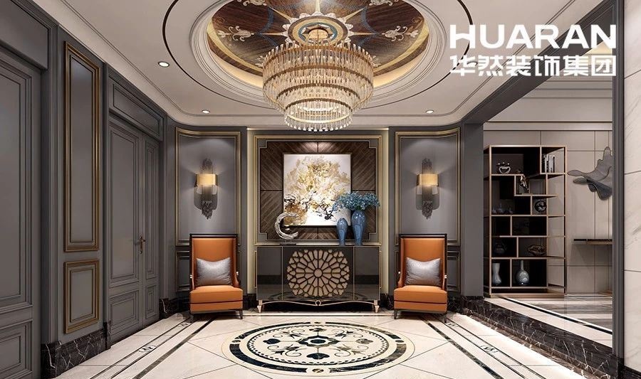 曾幾何時,對都市人來說,尋求一種自然隨性的生活是一種苛求。身處大都會的繁華,絢麗熱鬧的背后,又有多少屬于自己的空間。我們喜歡熱鬧的場景,也喜歡那安于一角欣賞繁華盛世的寧靜。玄關利用灰色調讓整個空間顯得沉穩(wěn),精致雕花的石膏線條,線條豐富的護墻板,以一種低調卻不容忽視的地位存在于空間之中。